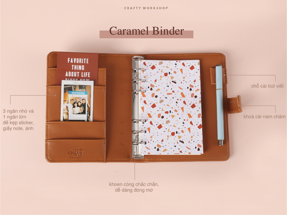 Caramel Binder là một trong những mẫu sổ còng nằm trong bộ sưu tập Sổ còng Day-to-Day Binder của CraftyWorkshop.